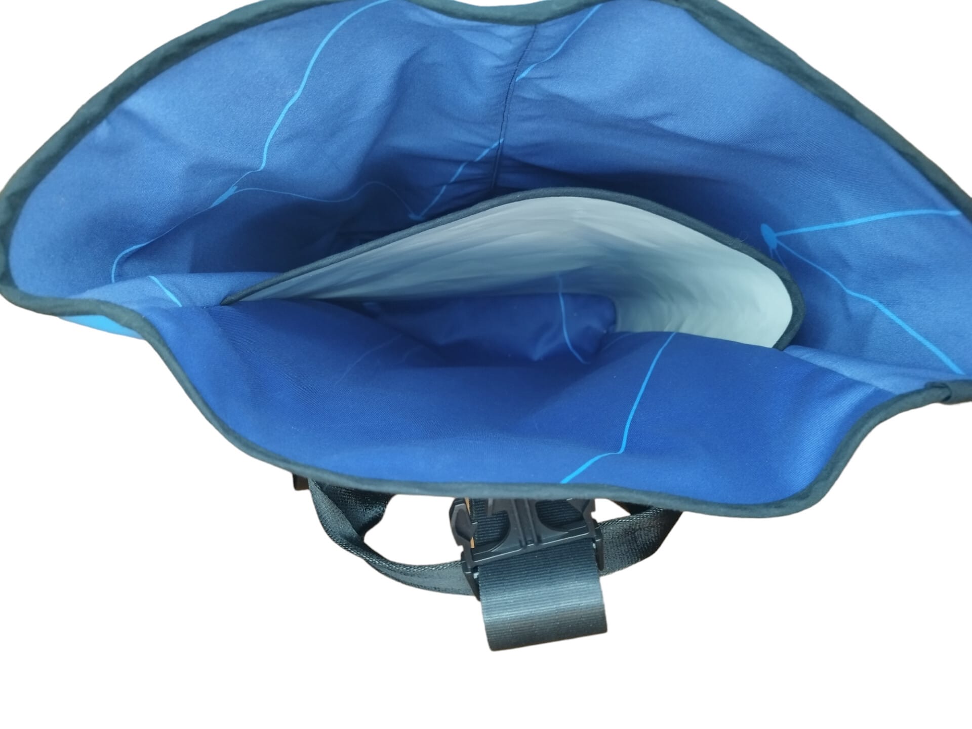 Nous utilisons des matières récupérées : bâches publicitaires, voiles de kite, textiles techniques, chutes d’ateliers.