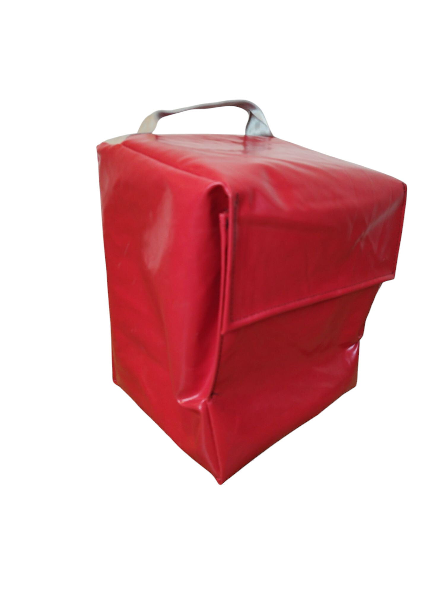 Nous utilisons des matières récupérées : bâches publicitaires, voiles de kite, textiles techniques, chutes d’ateliers.