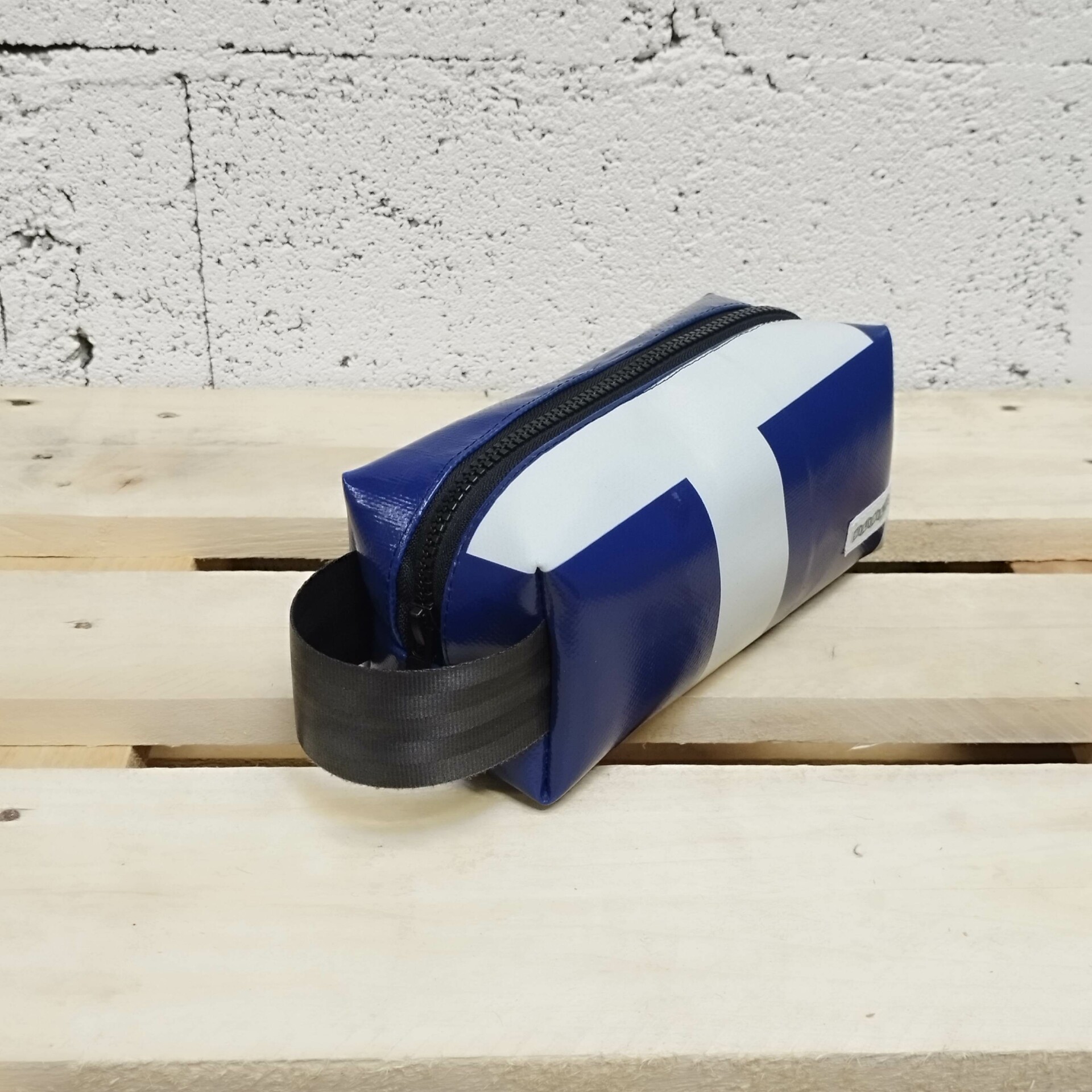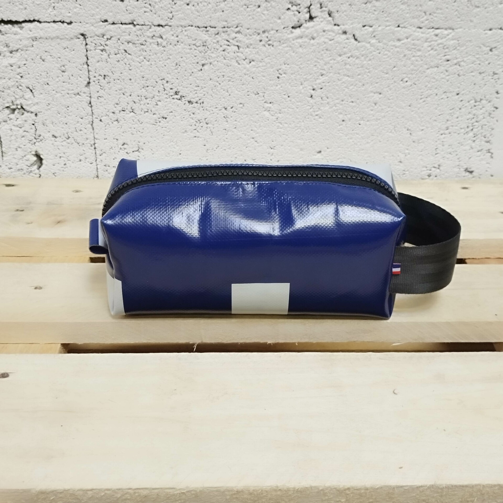 Trousse de toilette en bâche de camion et ceinture de sécurité de réemploi. Cette trousse de toilette stylée, hyper résistante et facile à nettoyer vous accompagnera au bout de monde!